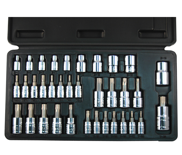 Includes 6-lobe standard, 6-lobe tamper-resistant, and external star bit sockets